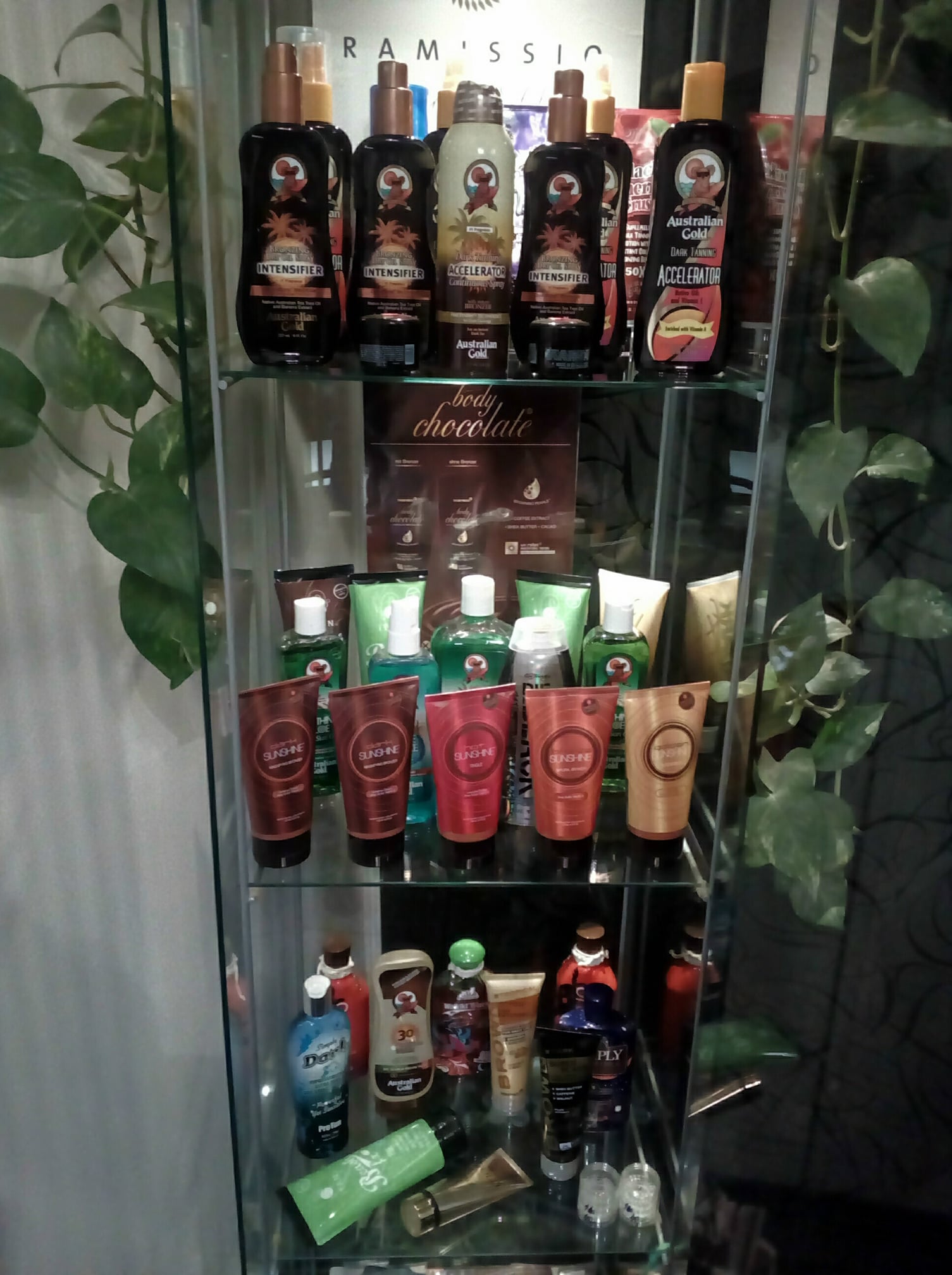 V našem salonu můžete zakoupit kosmetiku určenou pro opalování v soláriích značky Australian gold, Tannymax, Hawaiiana, Devoted, Pro Tan, Fiesta Sun, Ed Hardy, Playboy,